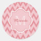 Sticker Rond Trendy Pink Chevron Zigzag Nom et Monogramme