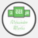 Sticker Rond Tri-Monogramme Vert Mariage Moderne Stickers/Sceau