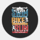 Swim, Bike, Run : Un design dynamique qui saisit l'essence du sport de triathlon, reflétant un sentiment d'endurance, de détermination et de l'excitation de la compétition.