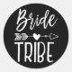 Un autocollant noir personnalisable adapté à votre tribu de fiancées. Il présente un style classique noir et blanc avec les mots mariée tribu écrit à la main police. Entre les deux mots est une flèche tribale perçant un coeur.