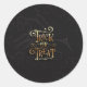 Sticker Rond Trick or Treat Crânes Fête d'Halloween noire et or
