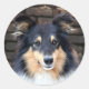 Beau tricolore Sheltie ou Shetland Sheepdog visage sur un collant arrière - plan de brique de couleur matchante amoureux de les chiens