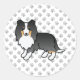 Sticker Rond Tricolor Shetland Sheepdog Sheltie Dessin Chien