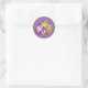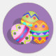 Sticker Rond Trois Oeufs de Pâques Décorés, arrière - plan viol