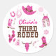 Sticker Rond Troisième Rodéo Rose Western Cowboy 3e anniversair