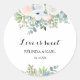 Cet amour de la verdure à l'eucalyptus tropical est un autocollant rond classique mariage doux est parfait pour un mariage de destination. Le design se décline en roses éclatants illustrés de violet, blanc, bleu et rose, nichés dans un beau bouquet de feuilles vert eucalyptus.
