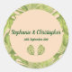 Un autocollant de mariage monogrammé (ou sceau d'enveloppe pour les invitations de mariage) avec un thème tropical. Il dispose d'une frontière de feuilles verts tropicaux et de feuilles de fougères, avec un centre broussailleux. Les noms du couple peuvent être customisés avec la date, et la petite paire de feuilles de fougères ci-dessous peut être enlevée complètement si vous le souhaitez.