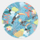 Sticker Rond Tropical Texture With Toucans and Hummingbirds