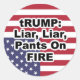 Sticker Rond ttRUMP : Menteur, menteur, pantalon sur le feu