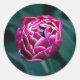 Tulip rose double fleur sur un arrière - plan de feuillage foncé, photographie.