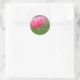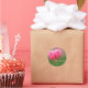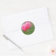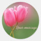 Deux tulipes roses nichées ensemble contre un arrière - plan en verre vert. Ajoutez facilement votre propre message pour customiser cet autocollant.