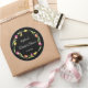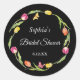 Tulipes et papillons modifiables Autocollant rond noir pour Baby Shower. Le design présente une jolie couronne de tulipes roses, jaunes et orange sur fond noir. Un papillon rose et jaune folâtre autour des tulipes, améliorant l'esthétique joyeuse avec une touche fantaisiste ! Utilisez comme sceau d'enveloppe pour vos invitations de Baby Shower et invitations sur le thème floral ! Personnalisez le texte et changez le style et la couleur de la police pour convenir. Repositionnez et supprimez le texte à l'aide de l'outil de conception si nécessaire.