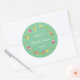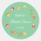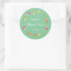 Tulipes et papillons verts modifiables Autocollant rond pour Baby Shower. Le design présente une jolie couronne de tulipes roses, jaunes et orange sur fond vert. Un papillon rose et jaune s'ébat autour des tulipes, améliorant l'esthétique joyeuse avec une touche fantaisiste ! Utilisez comme sceau d'enveloppe sur vos invitations de Baby Shower et invitations sur le thème floral ! Personnalisez le texte et changez le style et la couleur de la police pour convenir. Repositionnez et supprimez le texte à l'aide de l'outil de conception si nécessaire.