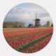 Sticker Rond Tulipes rouges et moulin à vent