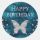 Sticker Rond Turquoise acrylique et Parties scintillant argent