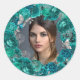 Sticker Rond Turquoise argent photo parties scintillant papillo