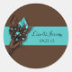 Sticker Rond Turquoise Bleu et Brown Enregistrer la date Sti