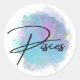 Avec des tourbillons de bleu et de violet, cet autocollant en zodiaque Pisces présente une galaxie étoilée avec une subtile constellation de Pisces jaunes dans l'arrière - plan.