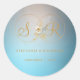 Monogramme d'or Turquoise Nom Sticker rond Mariage classique initial. Partagez vos merveilleuses nouvelles avec des êtres chers avec élégance et style. Commandez aujourd'hui !