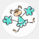 Sticker Rond Turquoise ; Pom-pom girl bleu vert