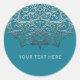 Sticker Rond Turquoise & Silver Mandala Elegant Minimal Mariage