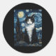 Sticker Rond Tuxedo Chat Starry Lune De Nuit Et Étoiles
