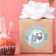 imprimé de chevrons gris doux avec accents d'aqua et sauteurs à pois avec cravate et cravate arc et ruban d'apparence 3D garniture jumeaux garçons baby shower étiquette cadeau .