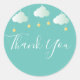 Twinkle saupoudrer petit baby shower étoile merci, autocollant rond classique. Conçu pour coordonner avec notre collection de baby showers à arrosage Twinkle. Avec de mignons nuages vert menthe et des étoiles d'or sur les cordes, sur un arrière - plan vert menthe neutre, ces autocollants sont parfaits pour sceller les enveloppes et les faveurs d'arrosage pour bébé.