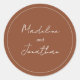 Autocollant rond classique de typographie de script manuscrit en terre cuite ordinaire