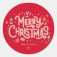 Typographie moderne Sticker rouge Joyeux Noël Classic rond. Stickers de Noël Joyeux moderne Tags cadeaux. Cliquez sur le bouton Modifier/Personnaliser pour customiser cette conception avec votre texte.