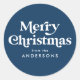 Sticker Rond Typographie Rétro Bleu Marine Joyeux Noël