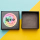 Sticker Rond Typographie Rétro Faite à la Main avec Amour Tie D
