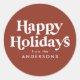Des autocollants de Noël simples avec "Joyuses Fêtes" affichés en lettrage blanc de style rétro sur fond marron terre cuite. Personnalisez les autocollants de fêtes en terre cuite avec votre nom ou votre texte personnalisé. Les autocollants de fêtes stylés sont parfaits pour sceller des enveloppes, emballer des cadeaux, des faveurs de fête, et plus encore ! Conçus pour aller avec notre collection de fêtes Typographie Rétro.