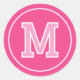 Sticker Rond Typographie rétro Monogramme personnalisée rose