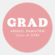Autocollants de graduation personnalisés avec "Grad" en caractères gras blancs rétro avec un arrière - plan rose (couleur modifiable). Personnalisez les autocollants de graduation rose en ajoutant le nom et l'année de graduation du diplômé. Les autocollants de graduation personnalisés sont parfaits pour sceller les enveloppes, les sacs de finition, etc.