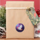 Belle auto-collant à thème espace. Un astronaute assis sur une fusée avec un arrière - plan de galaxie.