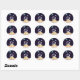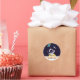Un autocollant de remerciement avec un arrière - plan bleu foncé avec des étoiles jaunes éparpillées autour. Couché sur le dessus est l'illustration d'un astronaute vêtu d'une combinaison blanche flottant au-dessus de la lune. Au loin se trouve une planète avec des anneaux et un vaisseau-fusée qui s'envole dans le ciel à la recherche de nouveaux mondes à explorer.