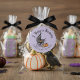 Personnalisé "Un bébé est en train de brasser" Halloween Baby shower de préférence autocollant, avec chariot de bébé dessiné à la main, corneille et citrouilles contre un arrière - plan violet clair. Idéal pour la décoration de sacs, boîtes et enveloppes de faveur. Cliquez simplement sur "Personnalisez ce modèle" pour insérer votre nom.