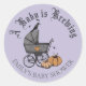 Sticker Rond Un bébé est en train de brasser Baby shower automn