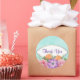 Merci à l'autocollant. Un beau bouquet de fleurs d'aquarelle, composé de pivoines roses, d'anémones violets et de tulipes oranges entourées de feuilles verts. Un cadre ovale fantaisie avec une bordure dorée dit merci ou vous pouvez le customiser pour lire ce que vous voulez. Placez-vous sur un arrière - plan d'aquarelle vert menthe doux.