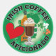 Ce design classique d'autocollants ronds Irish Coffee Aficionado est destiné à tous ceux qui aiment un café irlandais de deux avec la famille ou des amis.