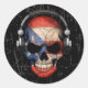 Sticker Rond Un crâne Dj Portoricain griffé avec casque