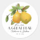 Des poires d'or entières pendent au milieu de feuilles verts aux fleurs blanches.
