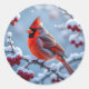 Sticker Rond Un joli cardinal sur une branche enneigée Noël
