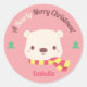 Un autocollant décoratif de Noël mignon avec un message de jeu de mots de Noël "Un joyeux Noël !" Décoré d'un joli visage d'ours polaire avec un foulard rayé rouge et jaune et deux icônes d'arbre de Noël. Personnalisez avec le nom.