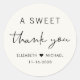 Chic crème légère sticker merci pour votre accueil de mariage faveurs avec "Un Merci doux" dans une typographie moderne simple et un script élégant, vos noms unis par un coeur et votre date mariage.