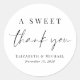 Un autocollant chic pour votre fête de mariage favorise avec "Un Merci doux" dans un script moderne et une typographie élégante, vos noms et la date mariage.