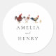 Un autocollant de mariage à thème botanique moderne et rustique avec l'aquarelle illustrant les poulets et les poussins. Customisez ce produit en ajoutant le nom du couple ci-dessous.