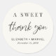 Un autocollant crème moderne pour votre mariage favorise avec "Un Merci sucré" dans un script chic et une typographie élégante, vos noms et la date mariage.