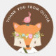 Sticker Rond Un mignon renard boisé. Enfants / bébé merci